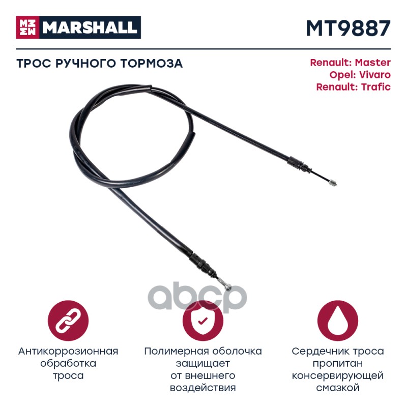 Трос ручного тормоза Renault Master II 98- Renault Trafic II 01- Opel Vivaro A 01- (MT9887)