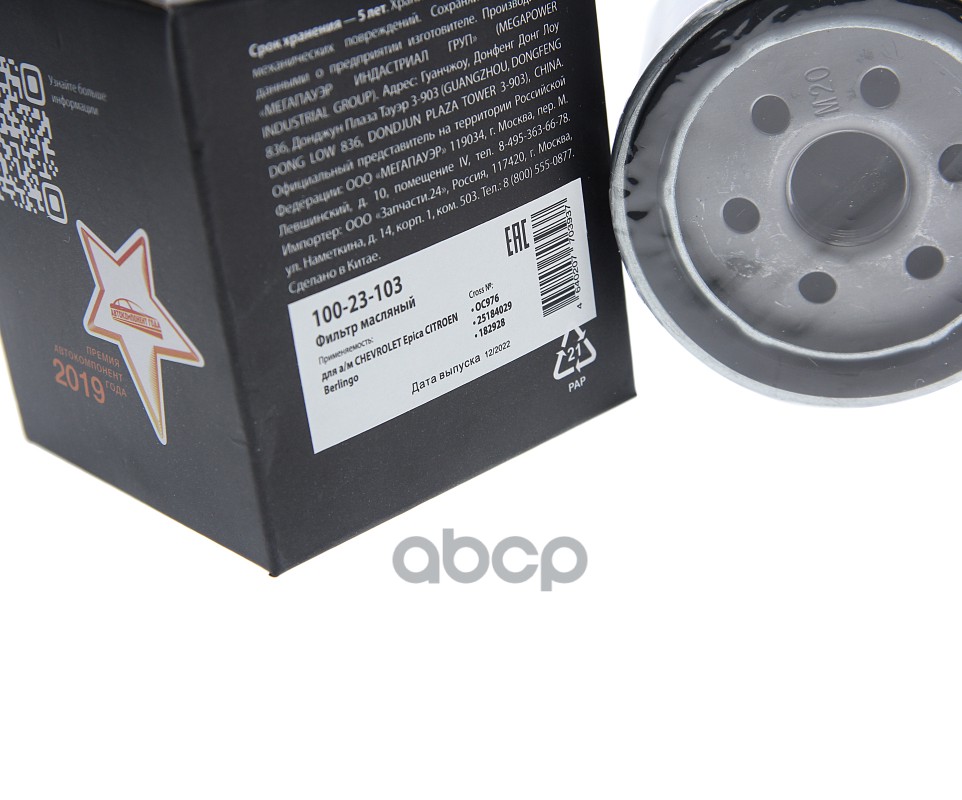 Бренд: MEGAPOWER Automotive, артикул: 100-23-103, Фильтр масляный CHEVROLET Epica CITROEN Berlingo MEGAPOWER. |
