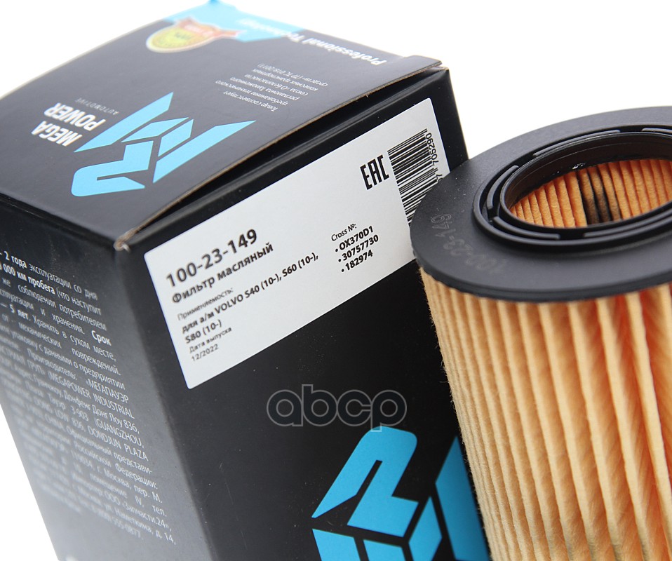 Бренд: MEGAPOWER Automotive, артикул: 10023149, ФИЛЬТР МАСЛЯНЫЙ VOLVO S40 10-,S60 10-,S80 10-. |