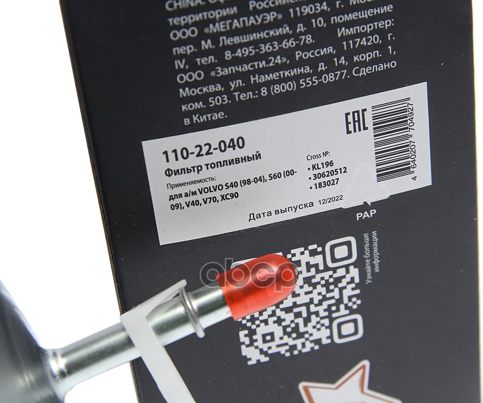 Бренд: MEGAPOWER Automotive, артикул: 11022040, ФИЛЬТР ТОПЛИВНЫЙ VOLVO S40 98-04,S60 00-09,V40. |