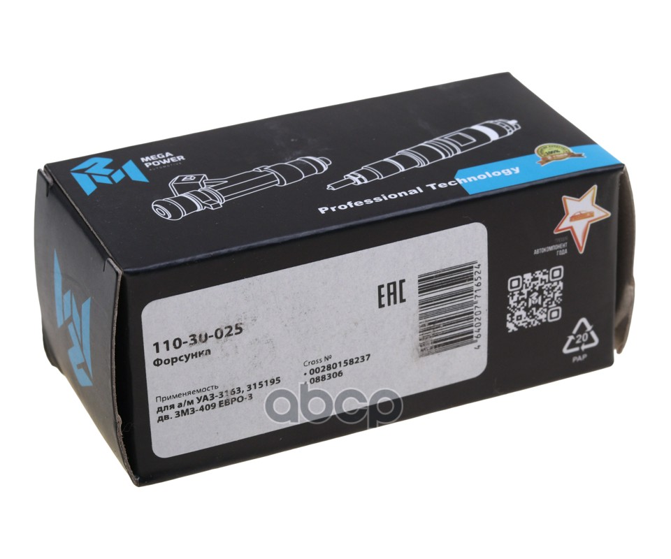 MEGAPOWER Automotive 11030025 Бренд: MEGAPOWER Automotive, артикул: 11030025, Форсунка УАЗ-3163,315195 дв.ЗМЗ-409 ЕВРО-3 топливная MEGAPOWER.