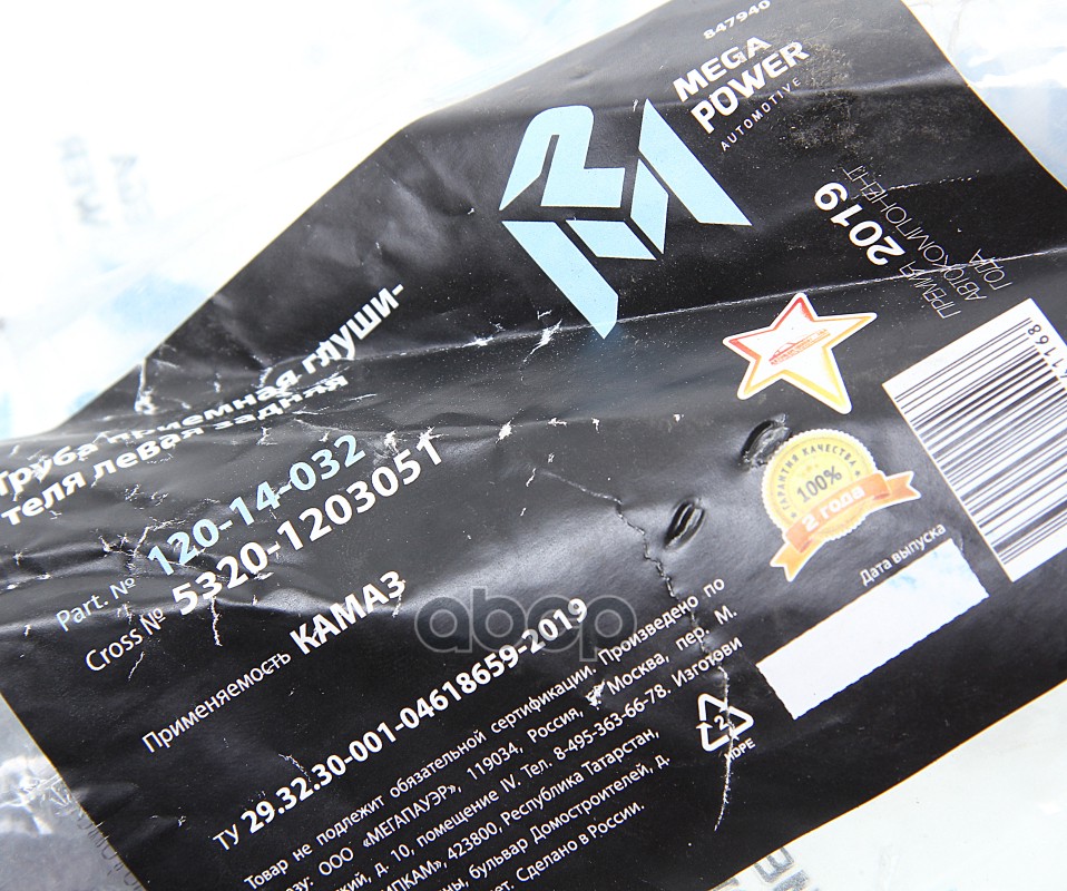 MEGAPOWER Automotive 12014032 Бренд: MEGAPOWER Automotive, артикул: 120-14-032, Труба приемная глушителя КАМАЗ левая задняя MEGAPOWER.