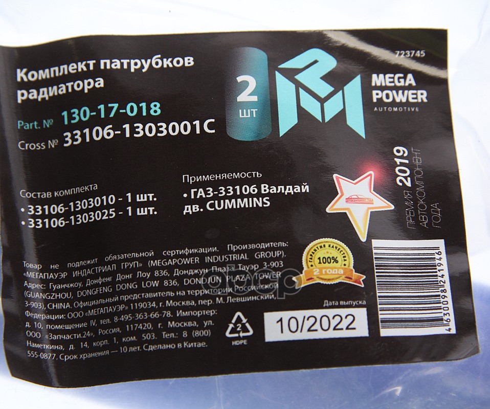 Бренд: MEGAPOWER Automotive, артикул: 130-17-018, Патрубок ГАЗ-33106 Валдай дв.CUMMINS радиатора комплект 2шт. синий силикон MEGAPOWER. |