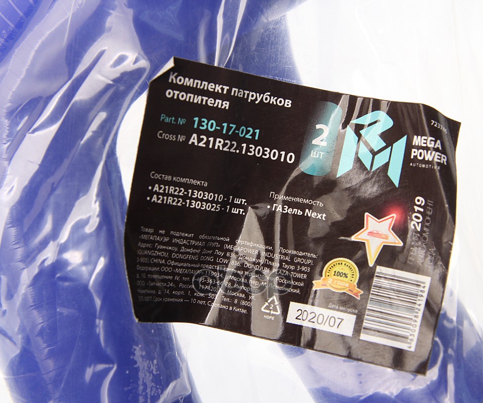 Купить запчасть 13017021 Патрубок ГАЗель Next радиатора комплект 2шт. синий силикон MEGAPOWER с доставкой в Эль-Монте.