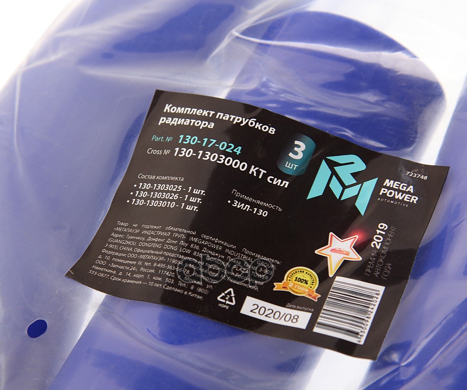 Бренд: MEGAPOWER Automotive, артикул: 130-17-024, Патрубок ЗИЛ-130 радиатора комплект 3шт. силикон MEGAPOWER. |