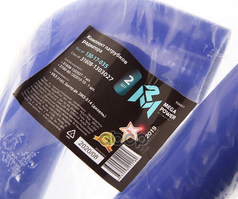 Бренд: MEGAPOWER Automotive, артикул: 130-17-035, Патрубок УАЗ-3160,Хантер дв.ЗМЗ-514 (дизель) радиатора комплект 2шт. синий силикон MEGAPOWER. |