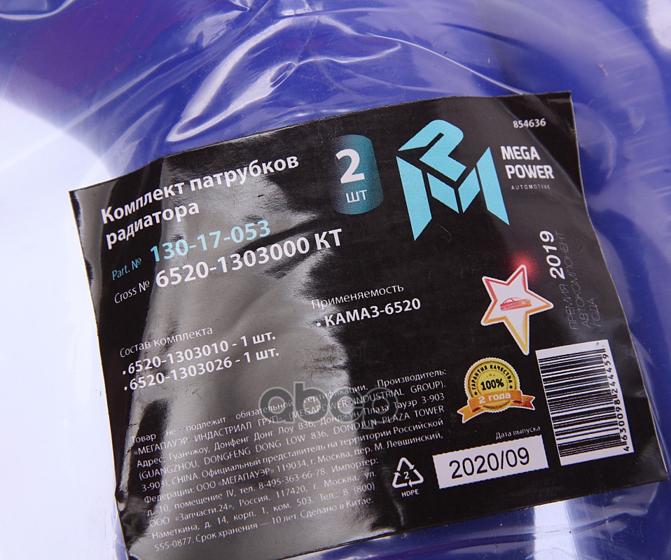 MEGAPOWER Automotive 13017053 Бренд: MEGAPOWER Automotive, артикул: 130-17-053, Патрубок КАМАЗ-6520 радиатора комплект 2шт. синий силикон MEGAPOWER.
