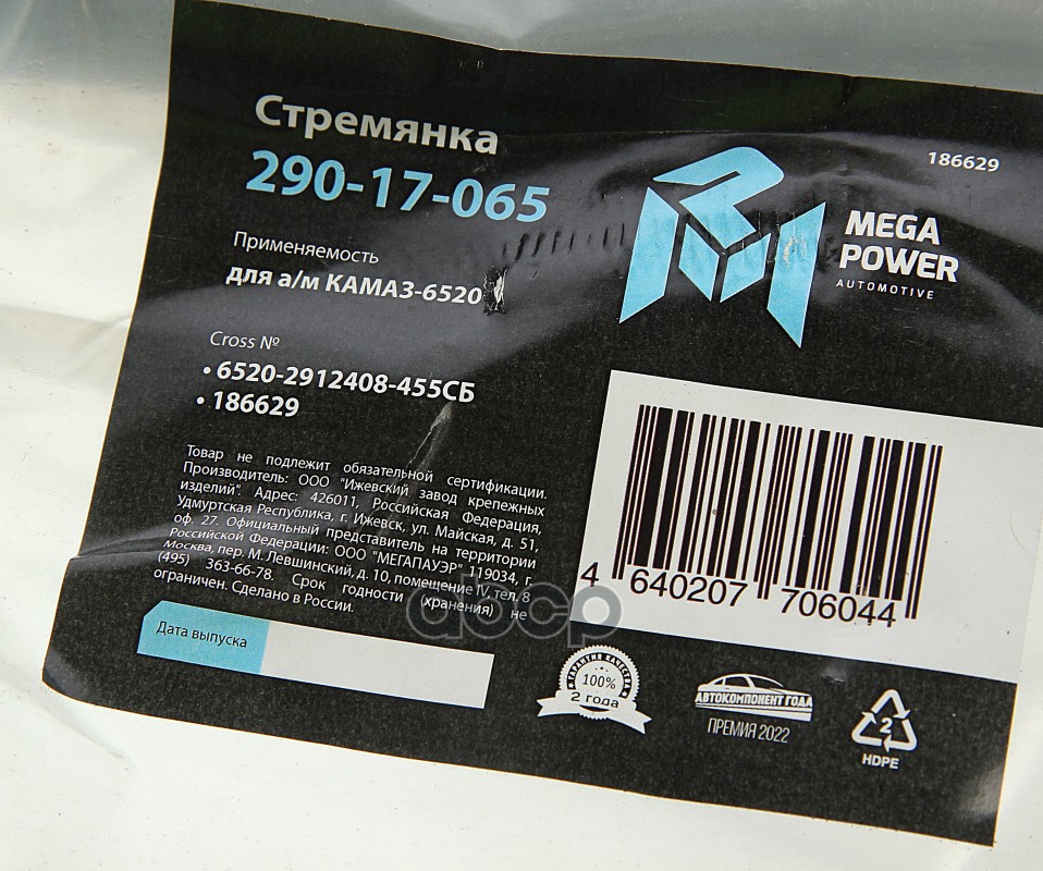 Купить запчасть 29017065 Стремянка КАМАЗ-6520 рессоры задней (20 тонн) L=455мм;М30х2мм кованая в сборе MEGAPOWER с доставкой в Эль-Монте.