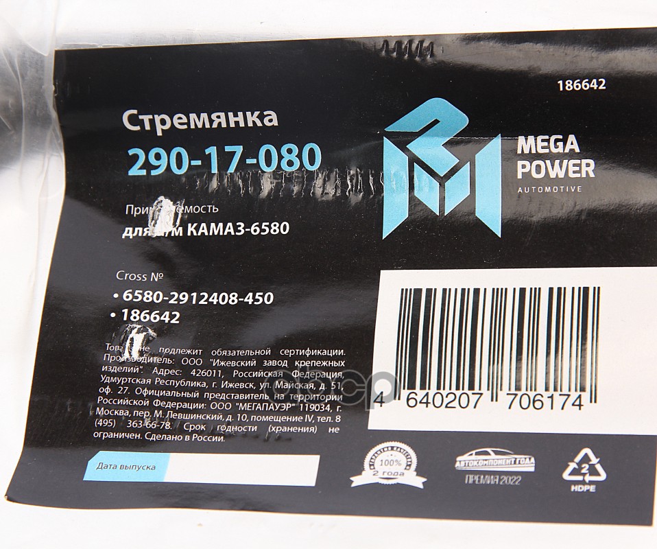 Наименование: Стремянка КАМАЗ-6580 рессоры задней L=450мм М24х2мм усиленная MEGAPOWER