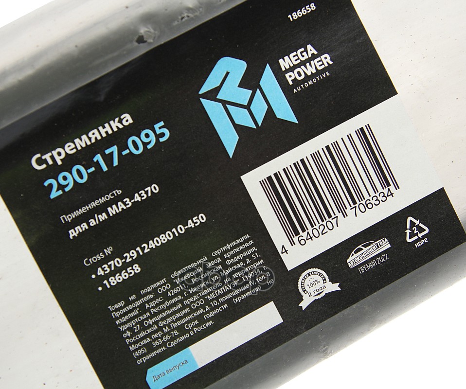 Бренд: MEGAPOWER Automotive, артикул: 290-17-095, Стремянка МАЗ-4370 рессоры задней L=450мм;М16х1.5мм длинная усиленная MEGAPOWER. |