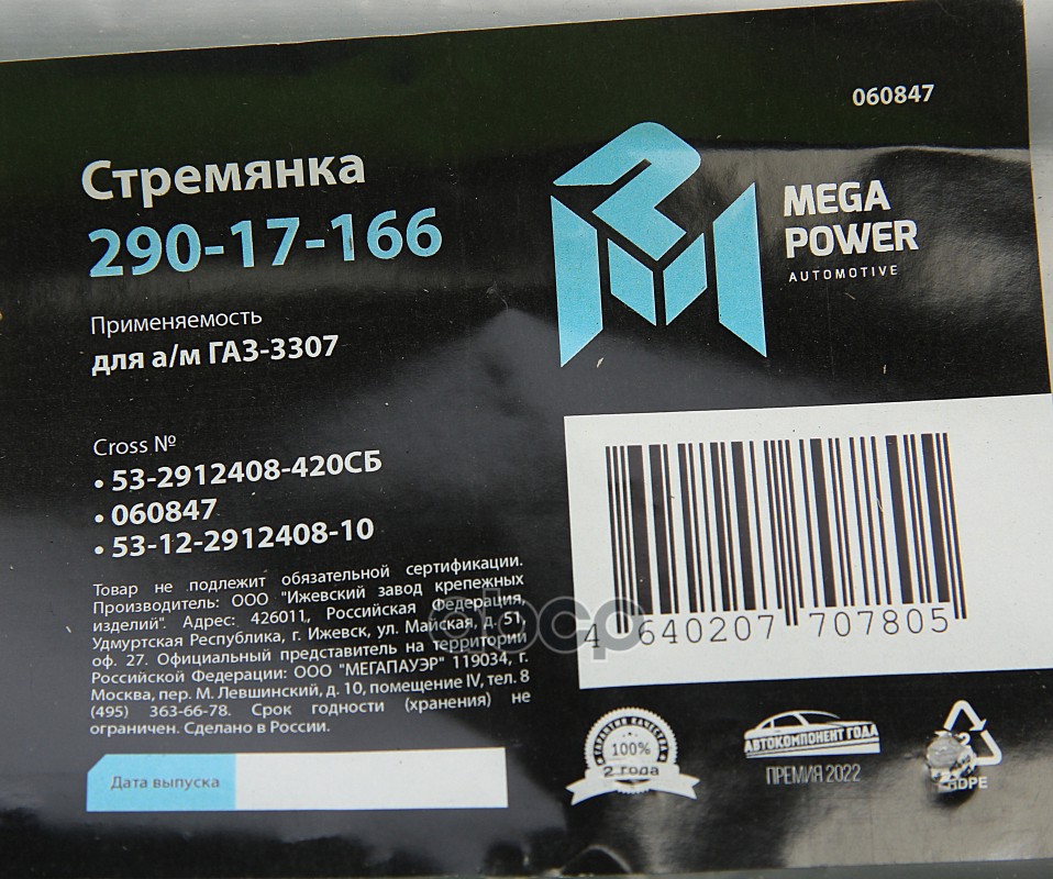 Наименование: Стремянка ГАЗ-3307 рессоры задней L=420мм;М20х1.5мм кованая в сборе MEGAPOWER