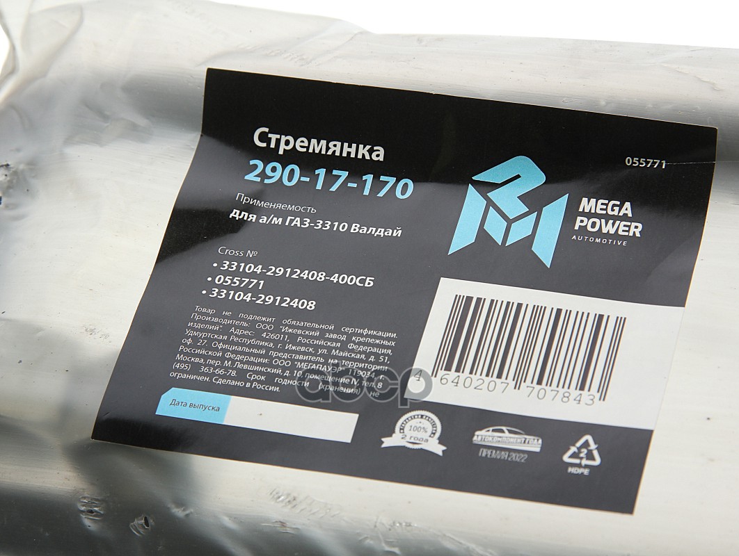 MEGAPOWER Automotive 29017170 Бренд: MEGAPOWER Automotive, артикул: 290-17-170, Стремянка ГАЗ-3310 Валдай рессоры задней L=400мм;М20х1.5мм усиленная в сборе MEGAPOWER.