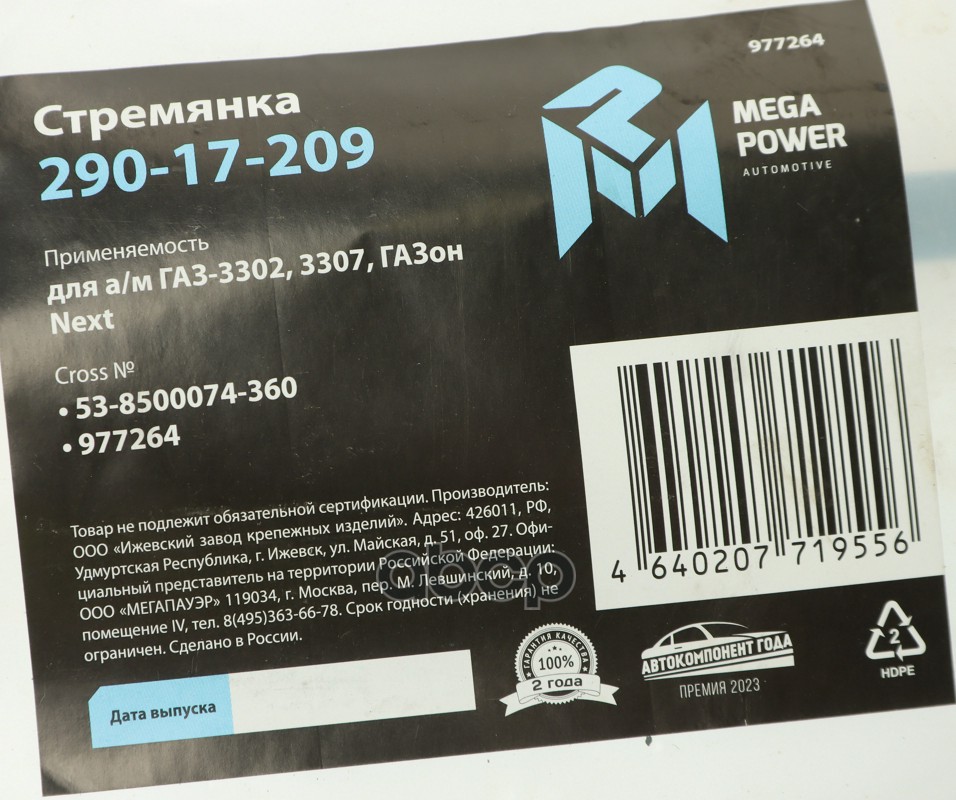 Купить запчасть 29017209 Стремянка ГАЗ-3302,3307,ГАЗон Next кузова L=360мм;М12х1.25мм средняя усиленная MEGAPOWER с доставкой в Эль-Монте.