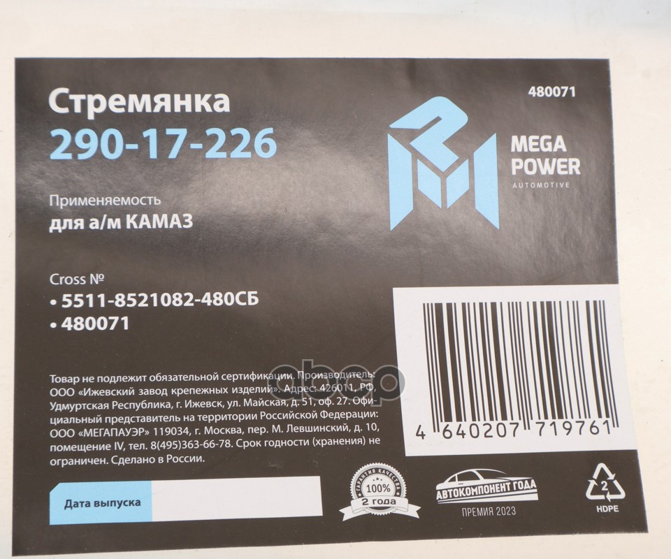 Купить запчасть 29017226 Стремянка КАМАЗ кузова L=480мм М14х1.5мм 10т длинная усиленная в сборе MEGAPOWER с доставкой в Эль-Монте.