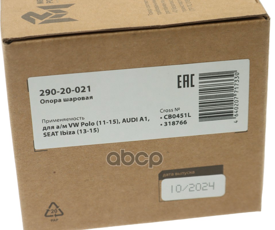 Бренд: MEGAPOWER Automotive, артикул: 29020021, Опора шаровая VW Polo 11-15 AUDI A1 SEAT Ibiza 13-15 левая MEGAPOWER. |