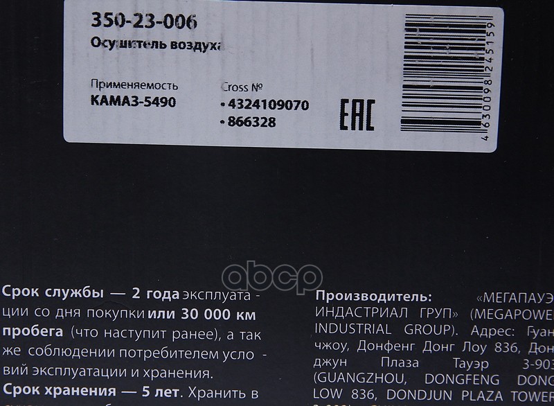 Бренд: MEGAPOWER Automotive, артикул: 350-23-006, Осушитель воздуха КАМАЗ-5490 (24V,4 выхода) MEGAPOWER. |