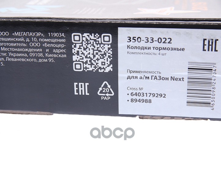 Бренд: MEGAPOWER Automotive, артикул: 35033022, КОЛОДКИ ТОРМОЗНЫЕ ГАЗОН NEXT ПЕРЕДНИЕ ЗАДНИЕ С РЕМ. |