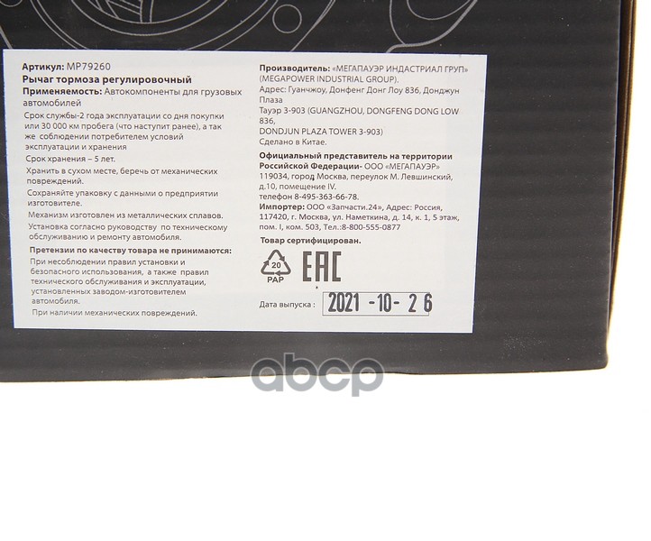 Наименование: Рычаг тормоза регулировочный КАМАЗ-6520 задний правый MEGAPOWER