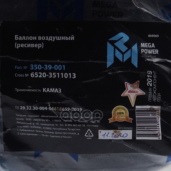 Бренд: MEGAPOWER Automotive, артикул: 350-39-001, Баллон воздушный КАМАЗ ресивер регенерационный MEGAPOWER. |