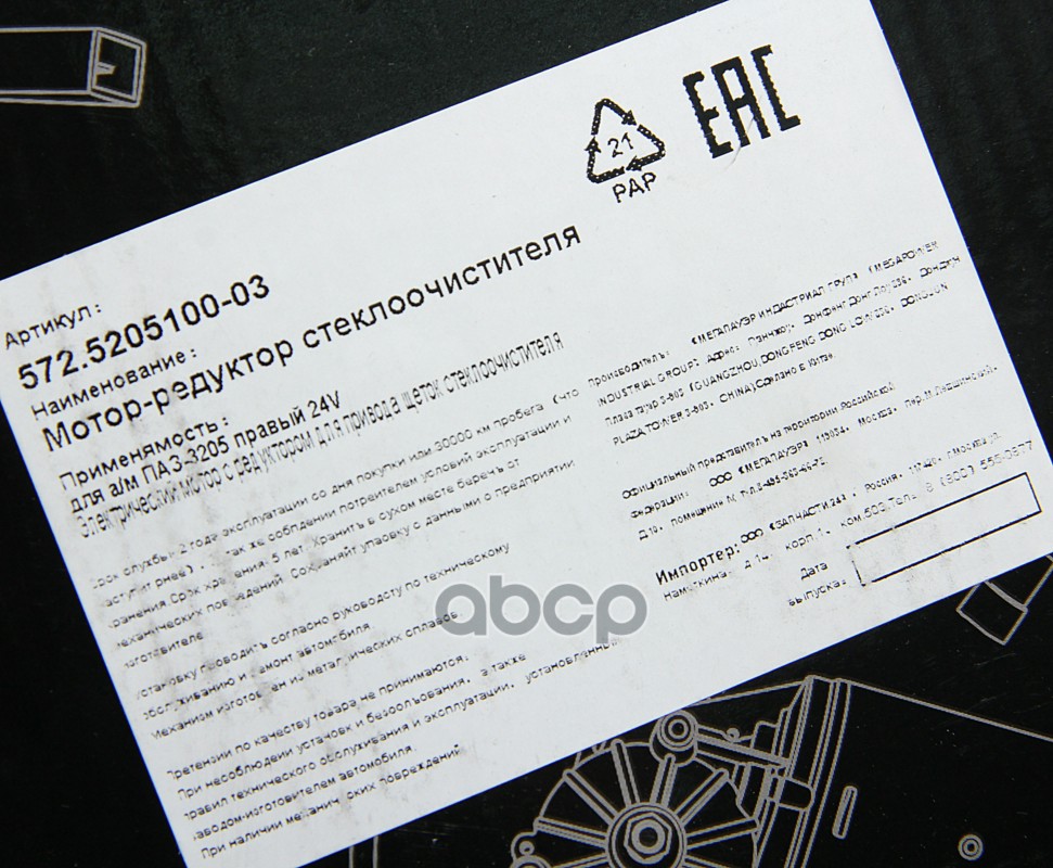 Наименование: Мотор-редуктор стеклоочистителя ПАЗ-3205 правый 24V MEGAPOWER