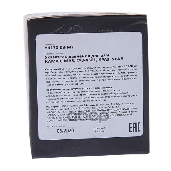 Наименование: Указатель давления КАМАЗ,МАЗ,ГАЗ-4301,КРАЗ,УРАЛ MEGAPOWER
