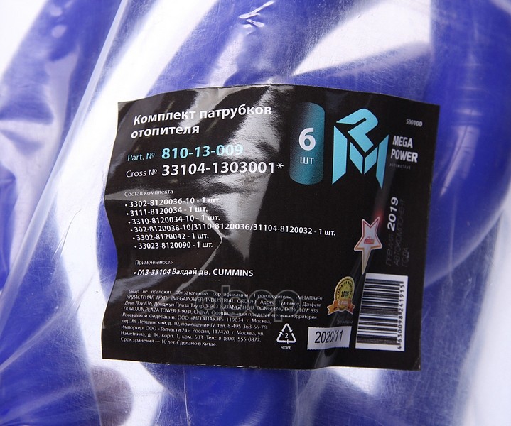 MEGAPOWER Automotive 81013009 Бренд: MEGAPOWER Automotive, артикул: 810-13-009, Патрубок ГАЗ-33104 Валдай дв.CUMMINS отопителя комплект 6шт. синий силикон MEGAPOWER.