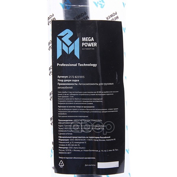 MEGAPOWER Automotive 82012003 Бренд: MEGAPOWER Automotive, артикул: 820-12-003, Амортизатор ВАЗ-2172 двери задка, КАМАЗ облицовки радиатора (рейсталинг.кабина) MEGAPOWER.