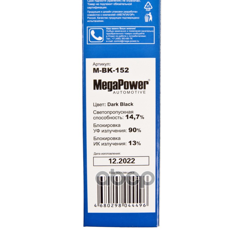 Бренд: MEGAPOWER Automotive, артикул: MBK152, ПЛЕНКА ТОНИРОВОЧНАЯ DARK BLACK 14,7 БЛОКИРОВКА У. |