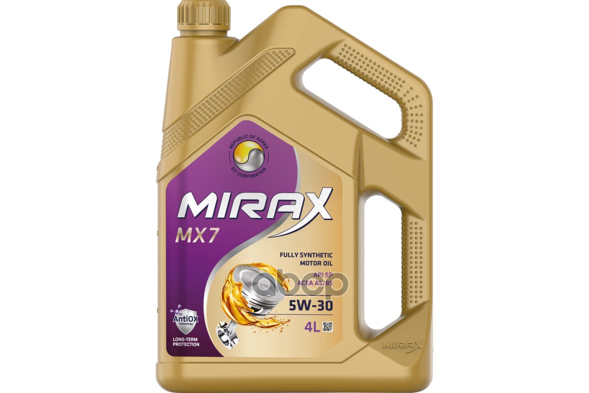 Наименование: Масло моторное синтетическое Mirax MX7 SAE 5W-30 ACEA A5/B5 API SP 4л