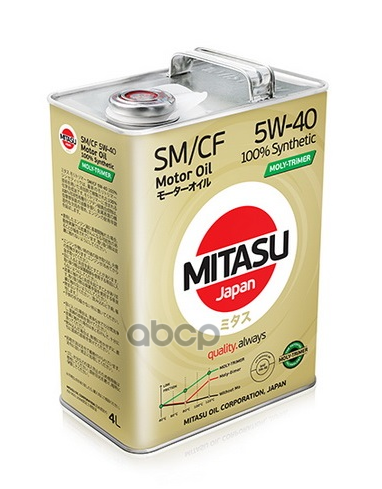 MJ-M12 MITASU MOLY-TRIMER SM 5W40 (1L) синтетическое мотор.масло для бензинз.дв.(1/20) Япония.