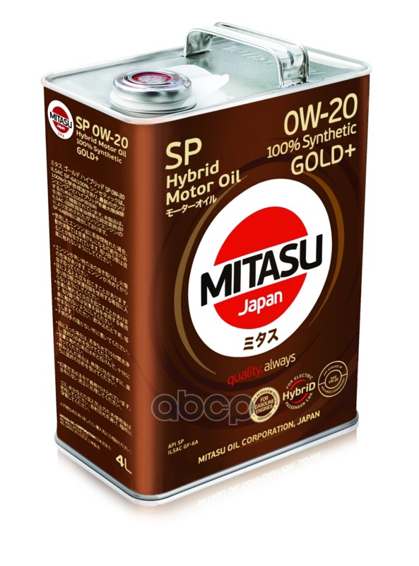 MJP02h4 MITASU GOLD Plus SP 0W20 (4L) синтетическое мотор.масло для бензинз.дв.(1/6) Япония.