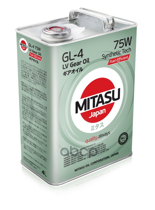 MJ410 Масло трансмиссионное MITASU GEAR OIL GL-5 75W90 (4L) синтетическое(1/6) Япония.