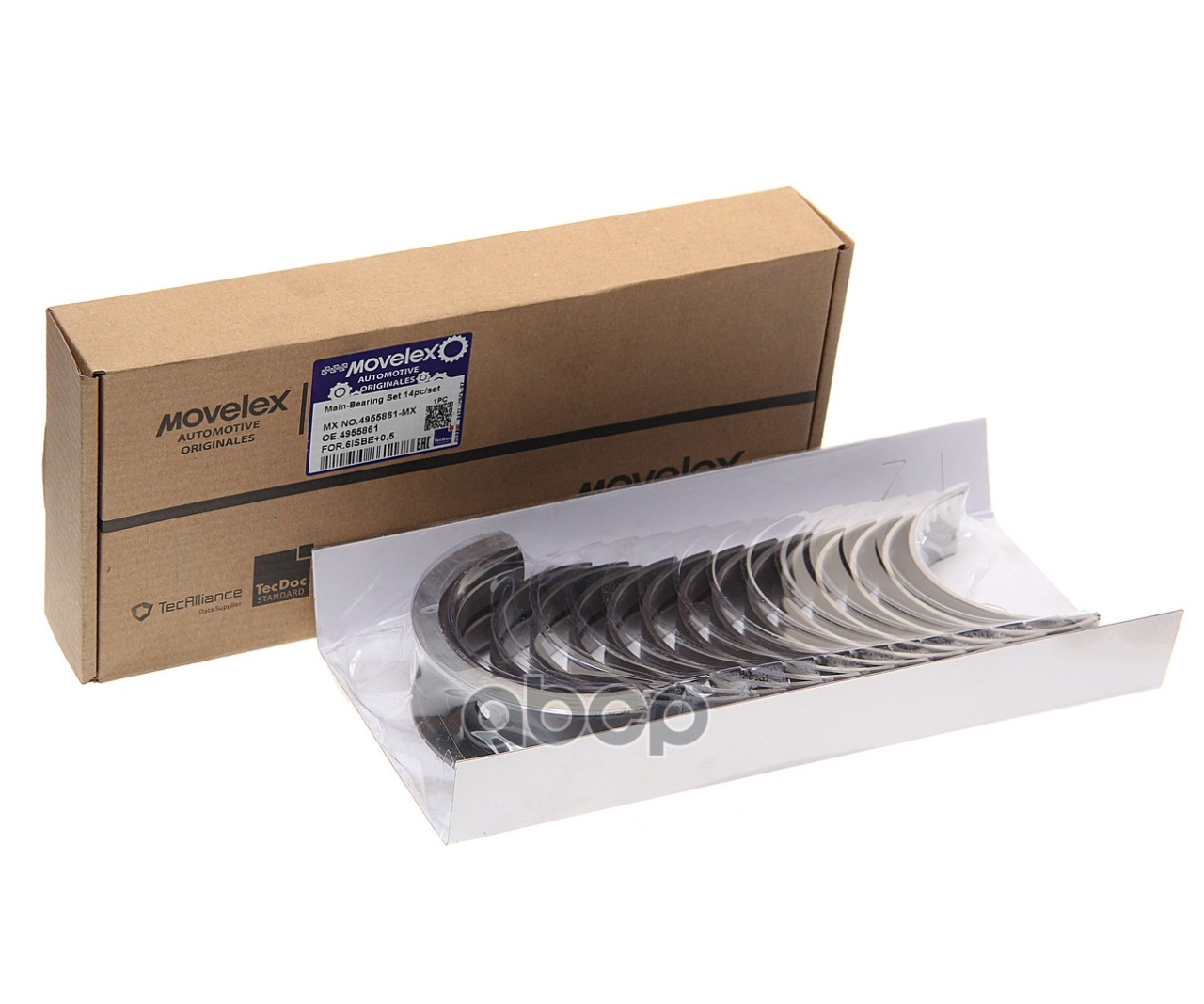 Наименование: Вкладыши КАМАЗ дв.CUMMINS ISBe, ISDe, ISF 3.8.6BT коренные d0.5 комплект 14шт.MOVELEX