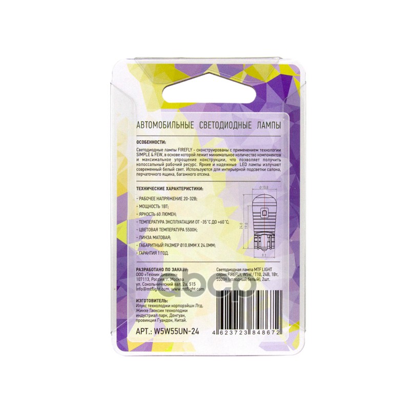 Купить запчасть W5W55UN24 СВЕТОДИОДНАЯ ЛАМПА MTF LIGHT СЕРИЯ FIREFLY, W5WT1 с доставкой по России.