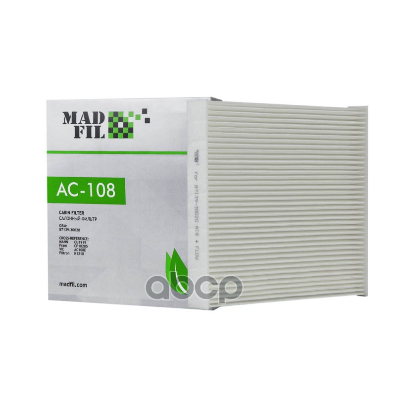Бренд: MadFil, артикул: AC108, Cалонный фильтр TOYOTA (87139-30020). |