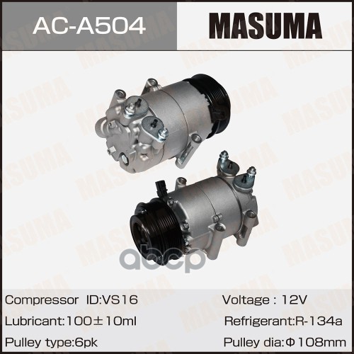 Компрессор кондиционера Opel Astra H 04- 1.6i/1.8i Masuma 75336 93168627;95516512;93196865;95515263;93187227;R1580053;93196859;13124750;93168625;13322147;93169375;1854188;1854397;6854088;1854170;1854534;6854059;1854528;1854172;CO20741C;OLAK428;C0411;3700K