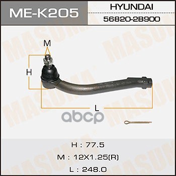 Наконечник рулевой Hyundai Starex 07-, Grand Starex/H-1 08- MASUMA правый 49265 568204H100;820575;BTR5639;5100339SX;PS1390RKOR;1110HH24R;QR3862S;S071025;4207508;51148;230885;MTR8H25;PXCTA040S;87435;19751AP;JTRHY012;0285193;91086471;3900201;CEKH43R;TS56820