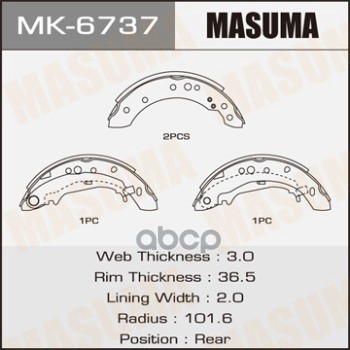 Колодки тормозные Mitsubishi Colt 02-, Lancer (CS) 00- барабанные Masuma 13397 4800A008;MR449087;MR485499;MN116757;MR449088;MR449086;MR569374;MN116758;MN116756;4800A089;MR569373;4800A091;4800A090;MR569372;MR586855;4600A179;4600A268;4600A178;4600A267;4600A