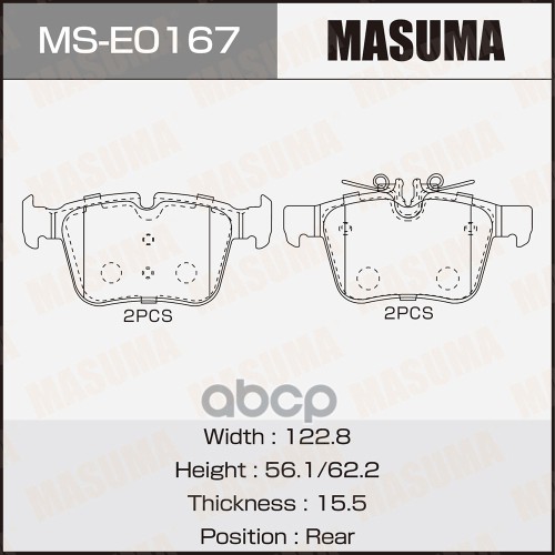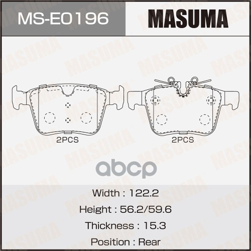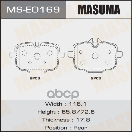Колодки тормозные BMW 1 (F40) 19-, X1 (F48) 14-, X2 (F39) 17- задние Masuma 68366 34206885547;34216859917;34216860403;6120632;82210380;P06094;8DB355021681;ADB114218;182193;253311601;2533101;BP3633;RB2193;GDB2063;LP2719;PN0651;13046073152;PP0103AF;16910;51
