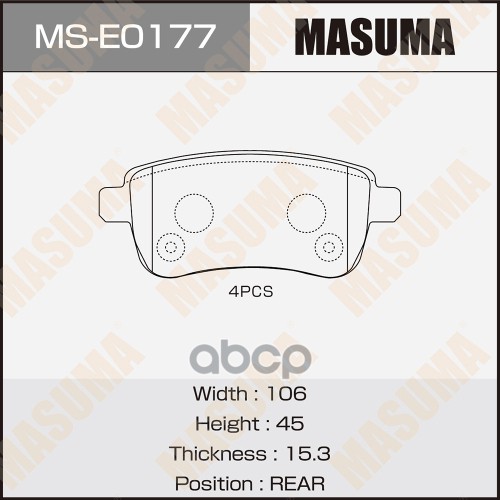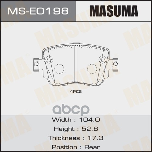 Колодки тормозные VAG Octavia III (5E) 12-, A1 (8X) 10-, Caddy IV 15- задние Masuma 68223 2K5698451A;5Q0698451F;8U0698451F;7N0698451A;5Q0698451L;2Q0698451A;5Q0698451B;P85135;51000900;35001;30916912;BP3623;2511003;PP0900AF;BD8044;GDB2042;8229800;2209800;GP