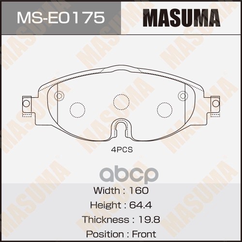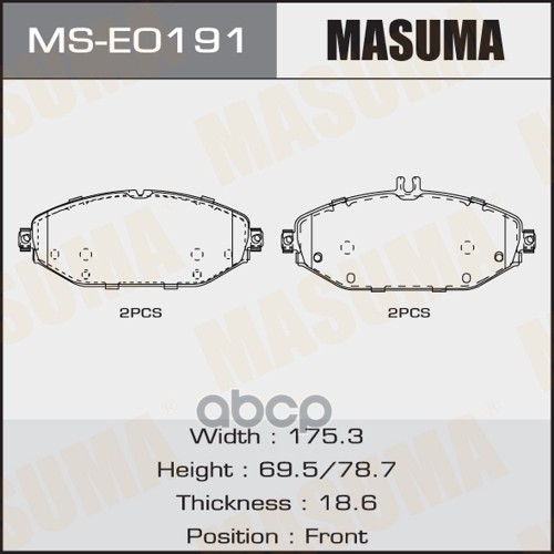 Колодки тормозные MB C (205) 13-, E (213) 16- передние Masuma 67825 A0084202820;A0004209300;A0084203820;8DB355021921;ST280001;6120971;P50124;LP3282;50000512;ADBP420019;PA0512AF;PN0574W;2211320;220761901;35080;GDB2097;500512;BS3057;SP4001;171406;2207601;13