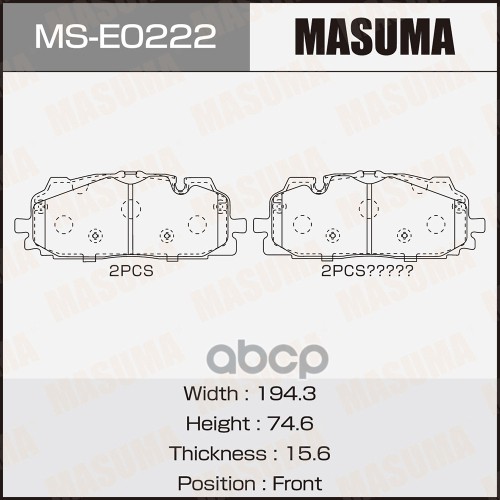 Колодки тормозные Volvo S60 III 19-, XC60 17-, XC90 II 21- передние Masuma 79778 31499906;31400527;31445975;31665288;31476723;31499905;31476722;32373186;31445976;32373126;32373124;32373125;PA0333AF;RA11790;B111527;82211200;BPD1428;50000333;573859J;169600;