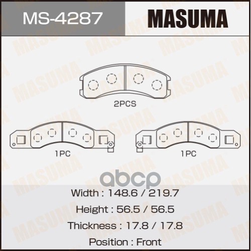 Колодки тормозные Mazda Bongo 99-; Mitsubishi Delica 99-; Nissan Vanette 99- передние MASUMA 10542 S4YP3323Z;LAY33328Z;S4YP3328Z;LAY33328ZA;S4YP3328ZA;1U1J3328Z;1U123328Z;S4YP3323ZA;MQ907154;MQ908292;MQ908290;MZ690184;MQ907152;41060HA027;AY040MA010;41060H