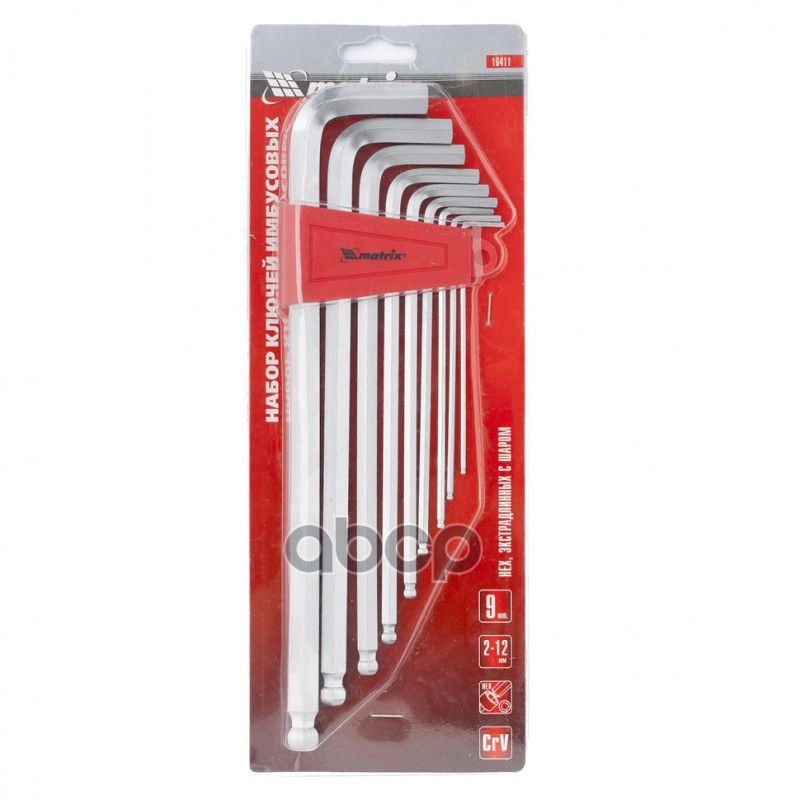 Наименование: Набор ключей имбусовых HEX, 2–12 мм, CrV, 9 шт., экстра-длинные, c шаром, сатин.