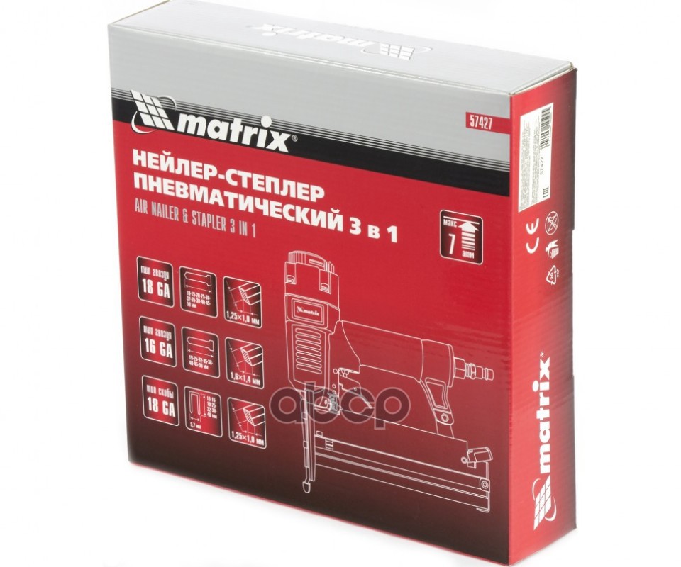 Наименование: Нейлер-степлер пнев. 3 в 1, с рег. глуб., гвозди 18GA, гвозди 16GA, скобы 18 GA
