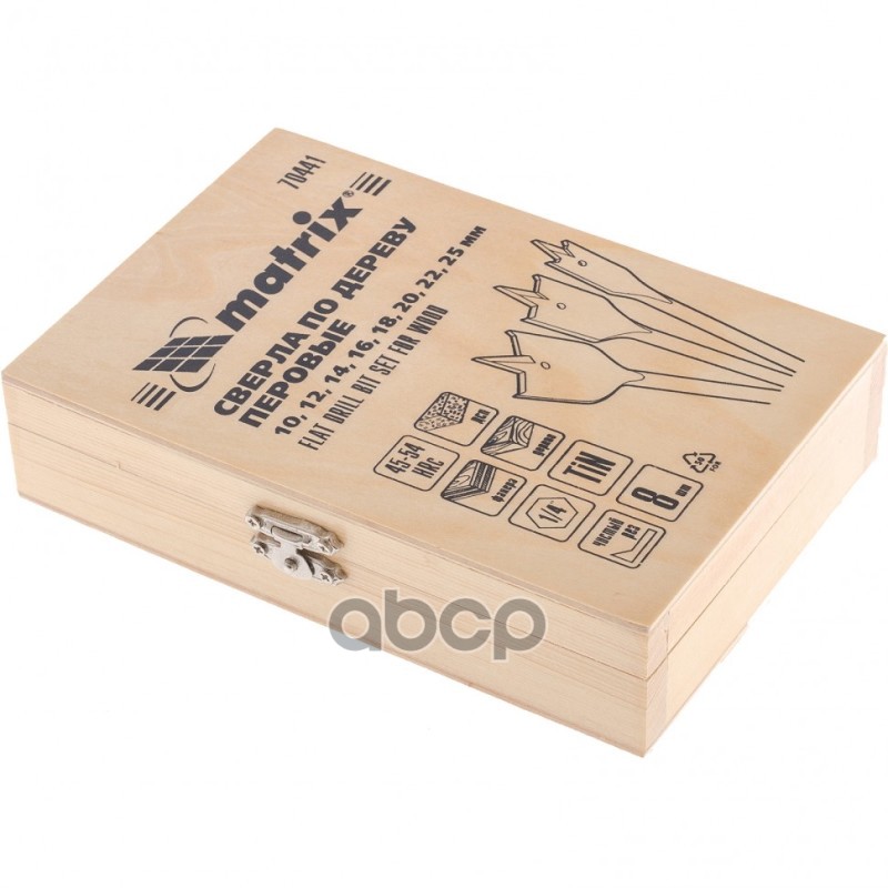 Наименование: Набор сверл перовых по дереву, 10-12-14-16-18-20-22-25 мм, 8 шт., дерев. кейс