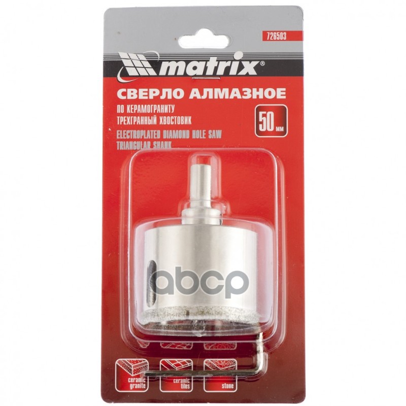 Купить запчасть 726503 Сверло алмазное по керамограниту, 50 х 67 мм, 3-гранный хвостовик с доставкой в Эль-Монте.