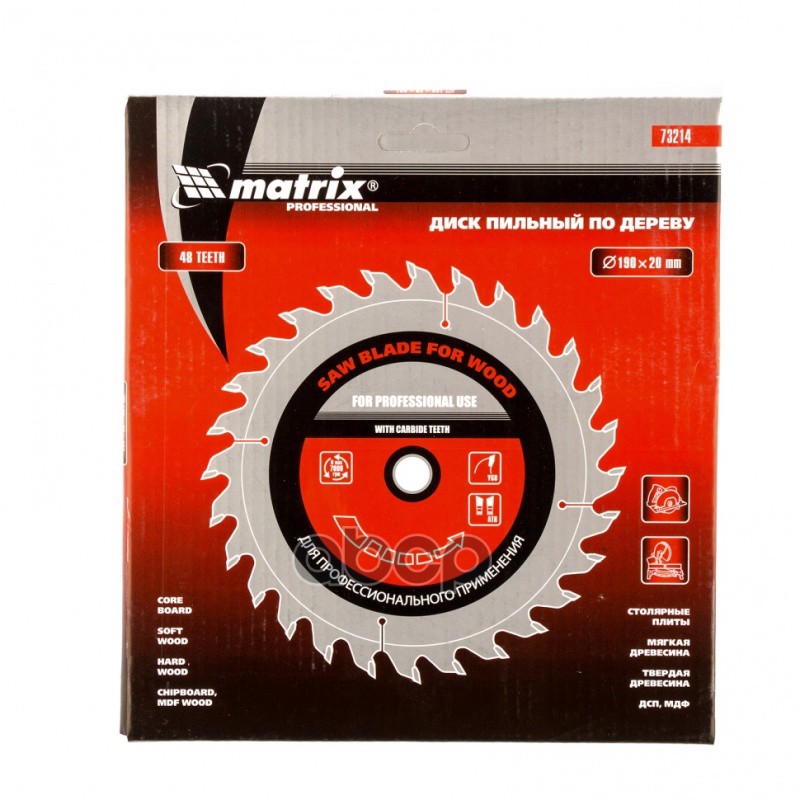 Наименование: Диск пильный 190х20мм 48 зубьев + кольцо 16/20 MATRIX