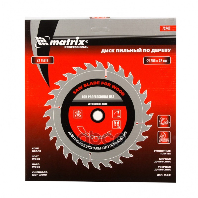 Наименование: Пильный диск по дереву, ф255 х 32 мм, 72 зуба + кольцо 32/30
