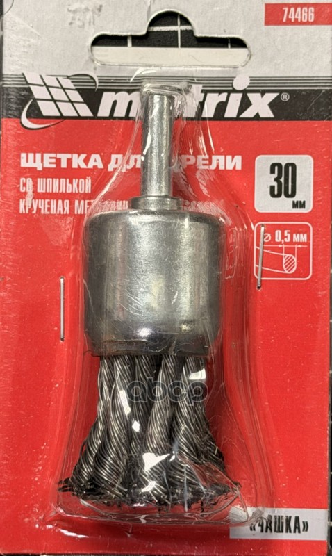 Щетка для дрели, 50 мм, плоская со шпилькой, латунированная витая проволока MATRIX 74444